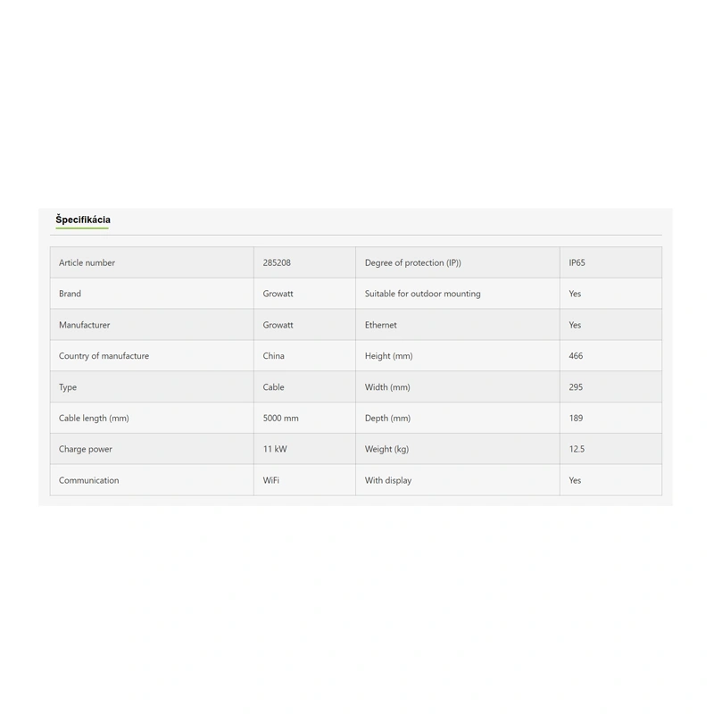 Growatt THOR 11AS-P-V1 je pokročilá, bezpečná a mimoriadne efektívna domáca nabíjačka pre elektrické vozidlá, navrhnutá tak, aby poskytovala maximálny komfort, rýchle nabíjanie a minimálne prevádzkové náklady. Vďaka výkonu až 11 kW, inteligentnému riadeniu a možnosti prepojenia s fotovoltickým systémom predstavuje ideálne riešenie pre rodinné domy, garáže aj firemné prevádzky.