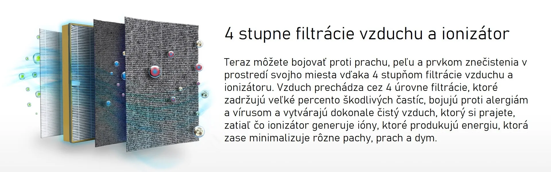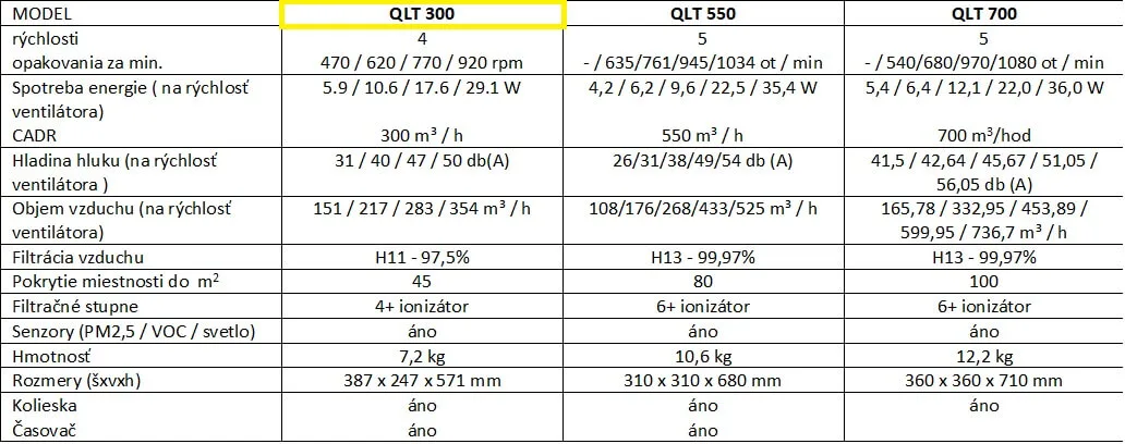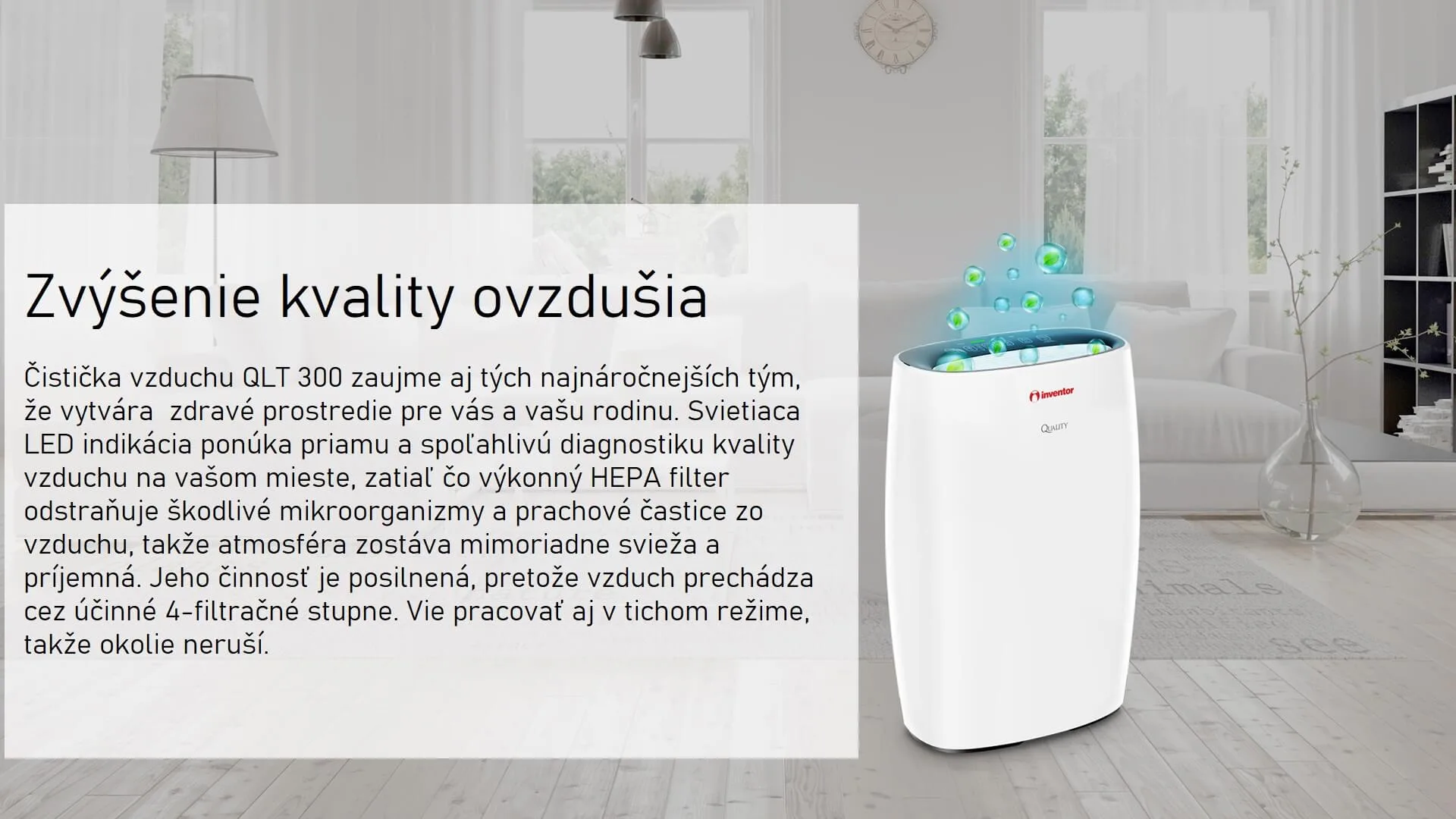 ČISTIČKA VZDUCHU QLT 300 VÁM ZVYŠUJE KVALITU OVZDUŠIA POMOCOU VIACERÝCH FILTROV, POMOCOU KTORÝCH BOJUJE PROTI PRACHU, PEĽU, BAKTÉRIÁM, ALERGÉNOM A VÍRUSOM.