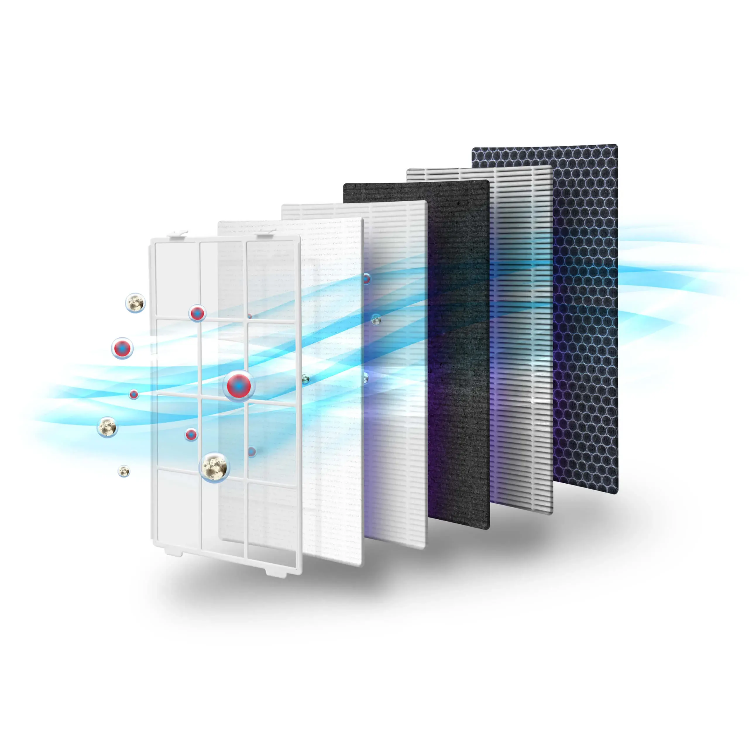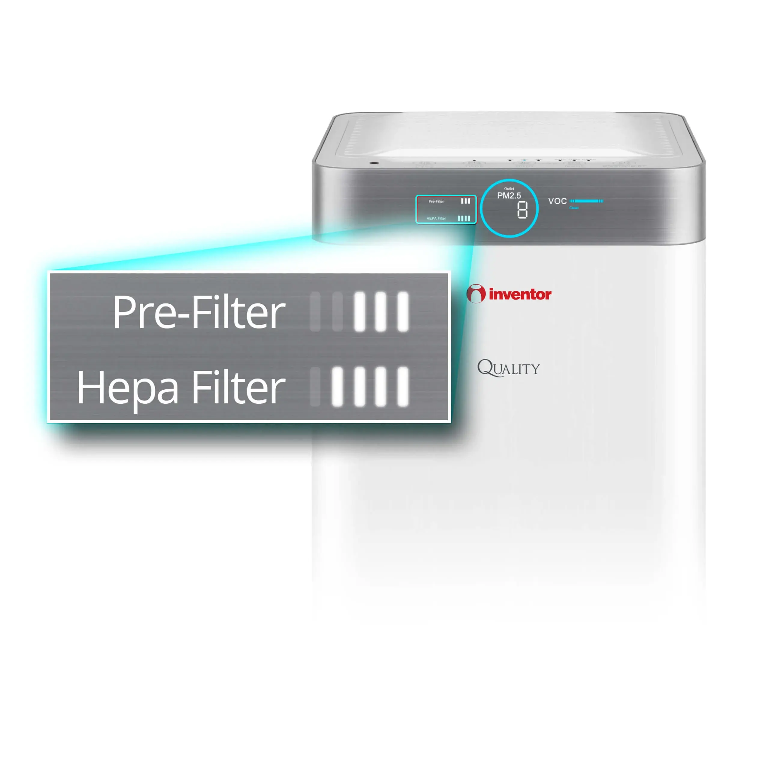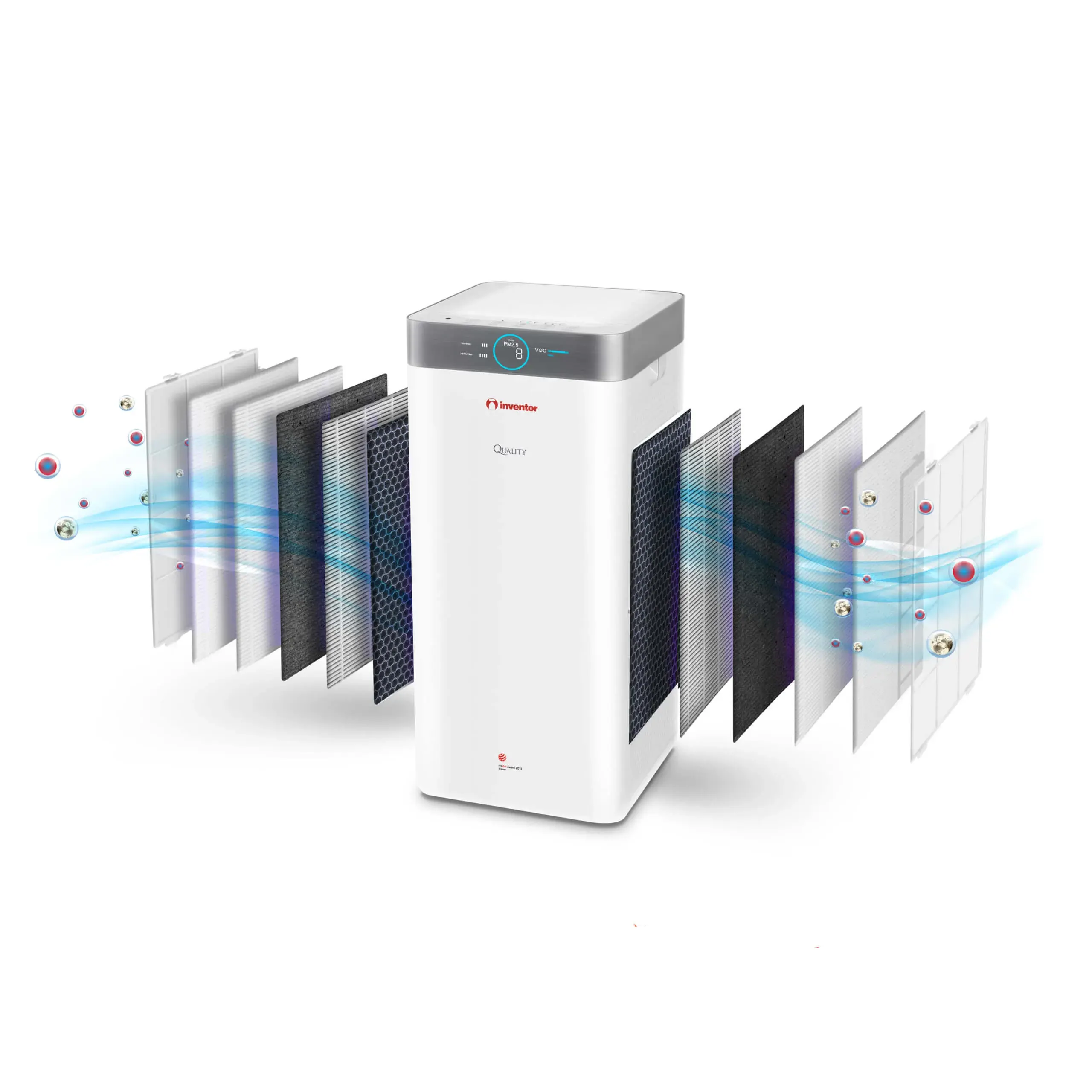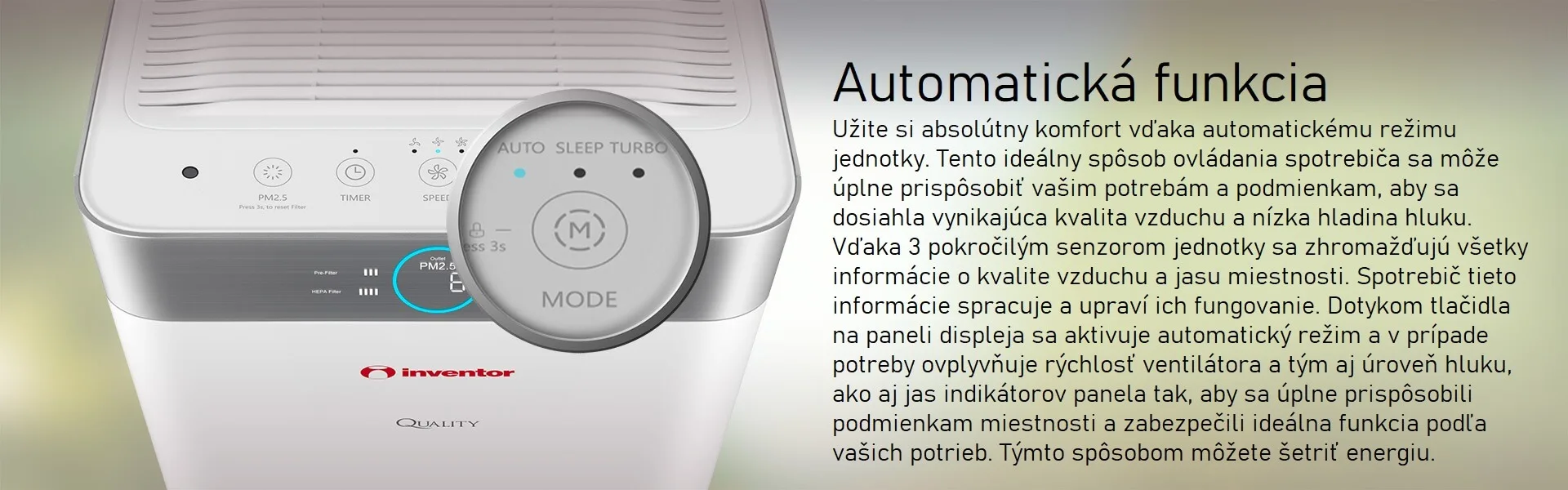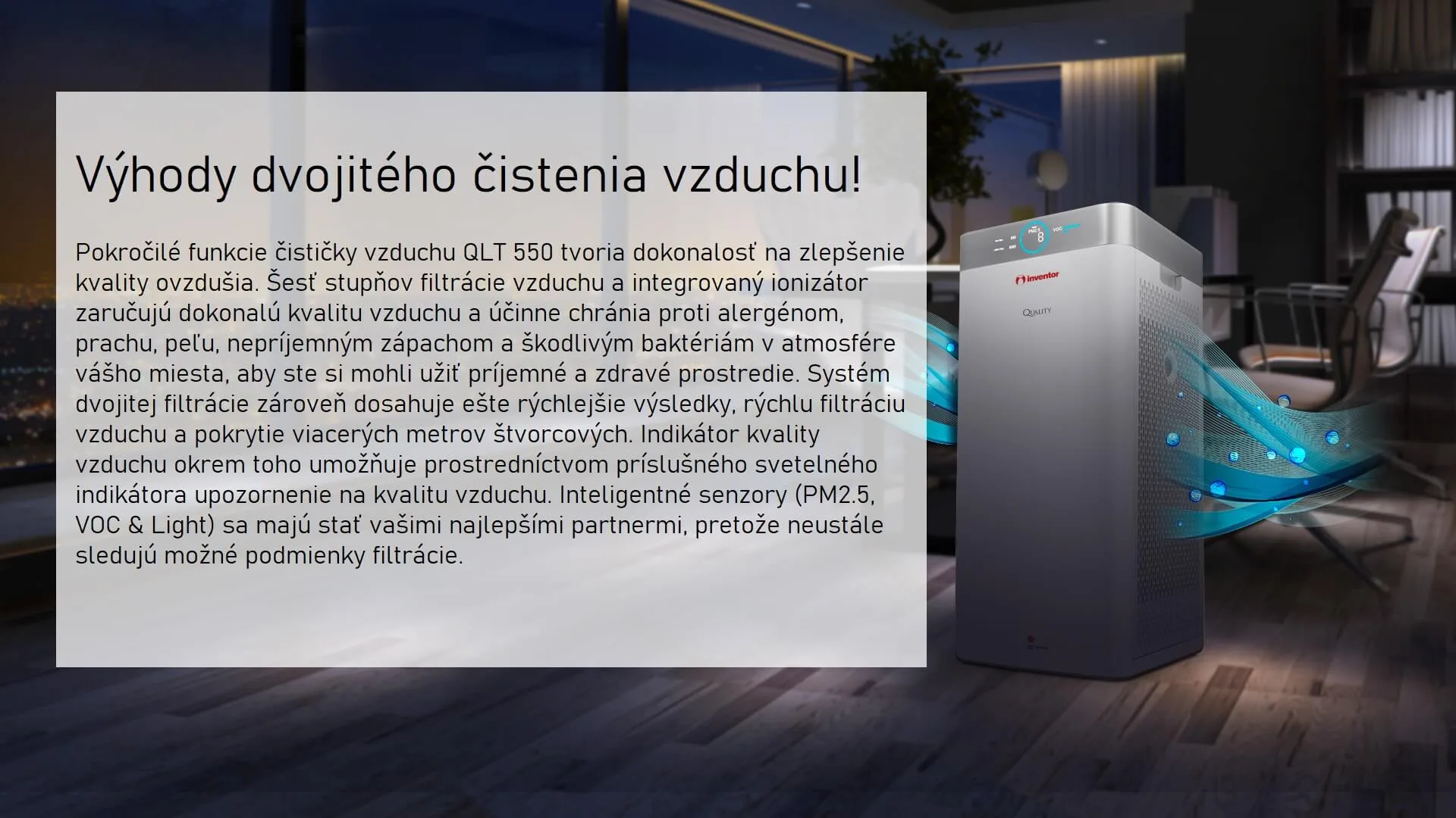 Čistička vzduchu so 6 – stupňovou filtráciou a systémom dvojitej filtrácie. Má 3 zabudované senzory, ukazovateľ kvality ovzdušia a automatickú funkciu.