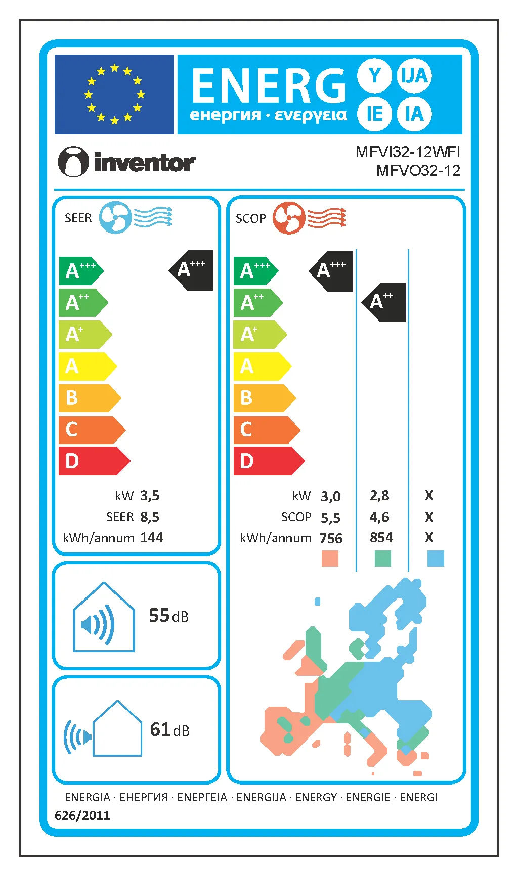 Technologická prevaha série zaručuje vynikajúce výkony pri najnižších prevádzkových nákladoch. Využite výhody najvyššej energetickej triedy A+++ klimatizácií Inventor a vytvorte si dokonalú atmosféru presne podľa svojich predstáv. Výberom klimatizácie s nižšou spotrebou energie zároveň ušetríte peniaze a zároveň sa postaráte o energetickú stopu.