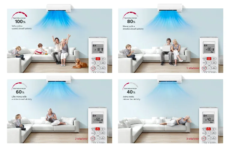 Vďaka tlačidlu LG Active Energy Control máte k dispozícii tri možnosti úpravy spotreby energie – 80 %, 60 % a 40 %. Jednoduchým spôsobom tak môžete ovládať chladiaci výkon a znižovať spotrebu energie.