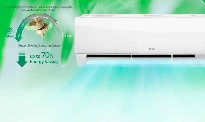 LG inteligentná invertorová klimatizačná jednotka začne rýchlo vyfukovať studený vzduch do miestnosti, takže prúd vzduchu dosiahne ďalej a ochladí priestor rýchlejšie.