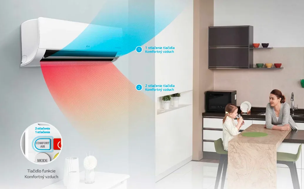 Funkcia Komfortný vzduch pohodlne nastaví lamelu do takej pozície, ktorá zabráni priamemu fúkania na osoby v miestnosti.