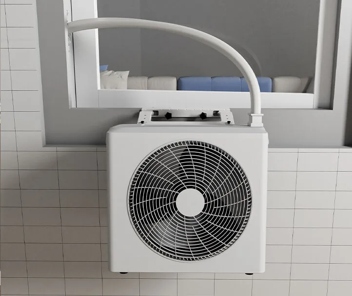 Naitec Flexi bol navrhnutý s ohľadom na vaše pohodlie počas noci. Tajomstvo jeho extrémne tichej prevádzky spočíva v tom, že najhlučnejšia časť – kompresor – sa nachádza vo vonkajšej jednotke za oknom.