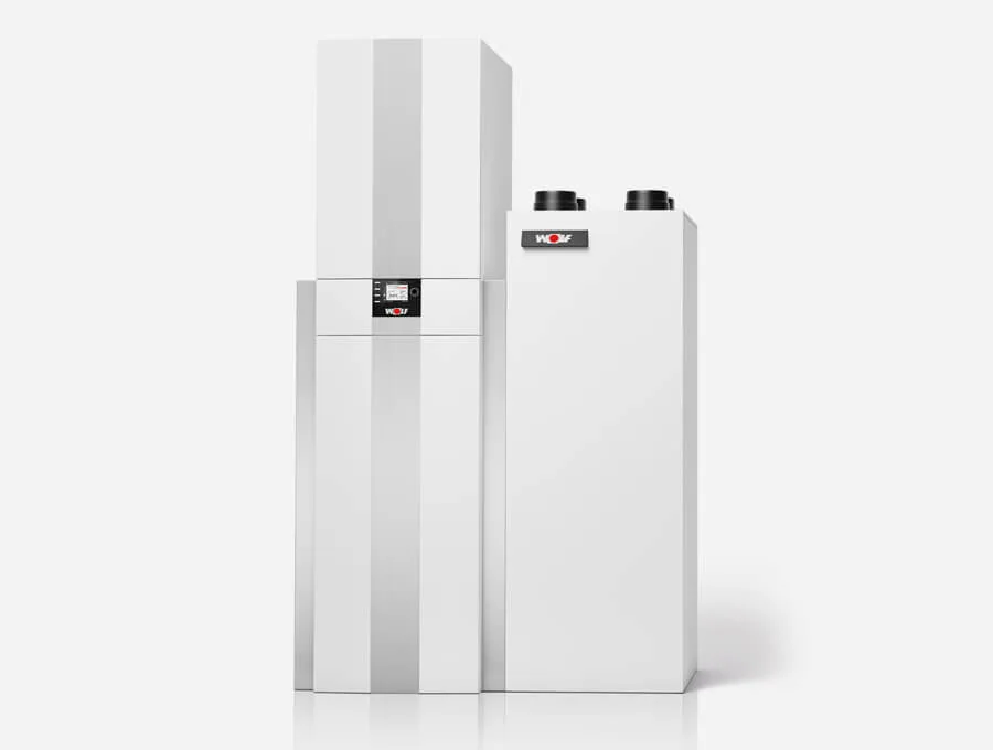 Vetranie obytných priestorov sa dá bez problémov kombinovať s plynovými kondenzačnými kotlami aj s tepelnými čerpadlami WOLF. Tak budete mať len jednu kompaktnú zostavu namiesto viacerých jednotlivých zariadení na mieste inštalácie, čím ušetríte priestor