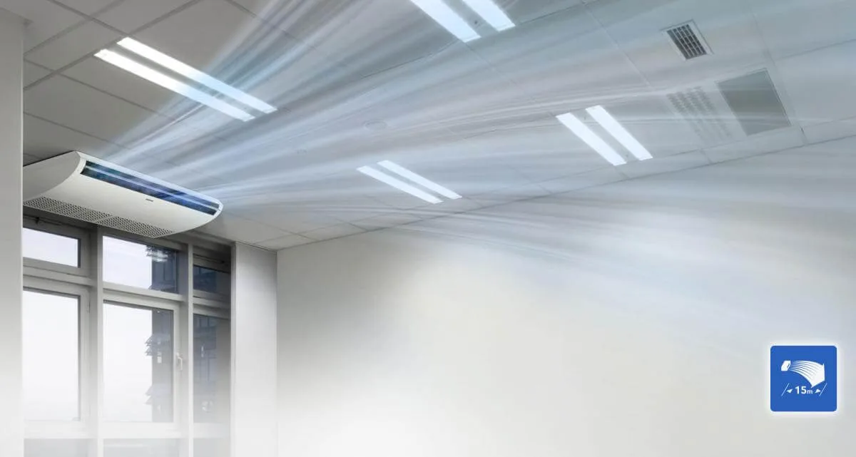 Možnosť obojsmernej inštalácie umožňuje užívateľom vybrať si riešenie podľa svojich špecifických požiadaviek. Túto flexibilnú jednotku je možné umiestniť pod strop alebo ako samostatne stojacu podlahovú jednotku. Ak je priestor obmedzený a vzduch musí prúdiť zhora, možno použiť stropné nastavenie, zatiaľ čo možnosť státia na podlahe je vhodná, keď je v miestnosti dostatok.