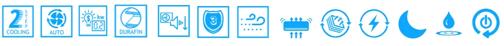 Funkcia 2-krokového chladenia rýchlo vychladí miestnosť, aby sa dosiahla požadovaná teplota a následne automaticky upraví rýchlosť ventilátora a smerovanie prietoku vzduchu, aby vám pomohla zostať v komforte a sviežosti.