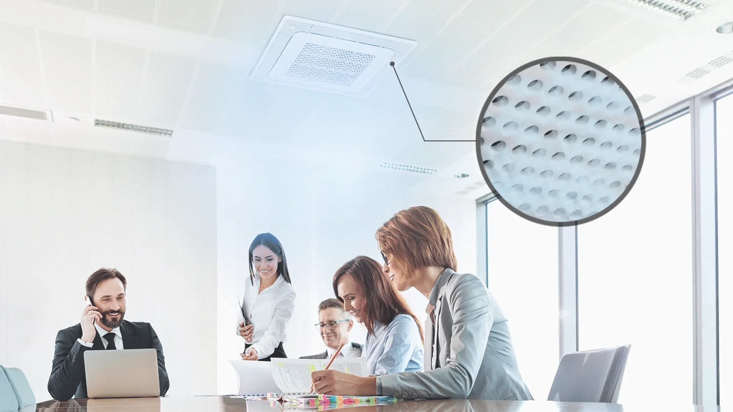 WindFree™ Cooling pomáha udržiavať pohodlnú úroveň chladu bez pocitu priameho prievanu studeného vetra. Chladný vzduch je jemne rozptýlený cez mikrootvory, čo pomáha udržiavať teplotu v priestore.